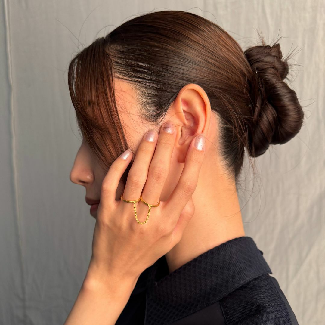 2-Way Chain Ear Cuff Ring (Gold)【Light】