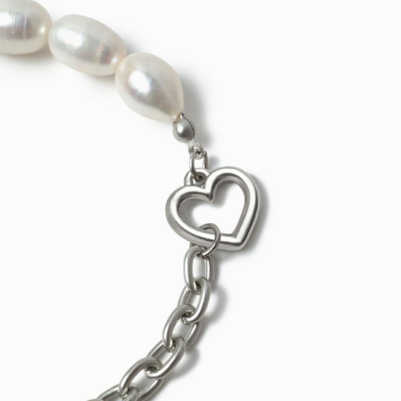 Heart Pearl Chain Bracelet (Silver)【Luxe】