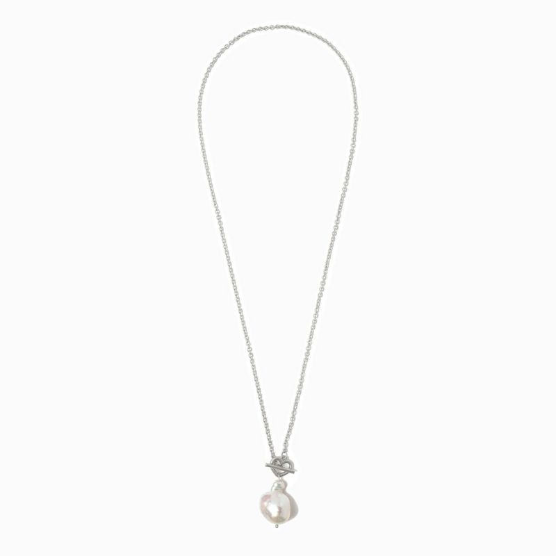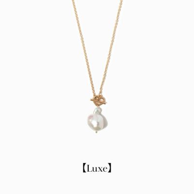 大粒のパールとハートのモチーフが印象的なチェーンネックレス。