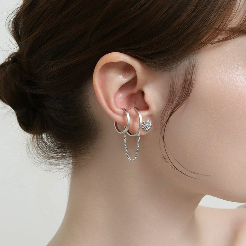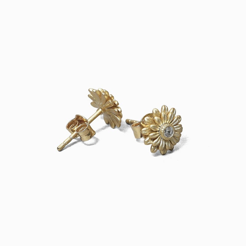 立体的なフォルムの繊細な花びらの模様を再現。サイズは小ぶりでスタッドタイプで付けやすいデザイン。お花の中央分にはクリアのキュービックジルコニアをセッティングしさりげない輝きをプラス。全体にはマットのコーティングを施し、肌馴染み、服装、シーンを選ばずお楽しみいただけるように。