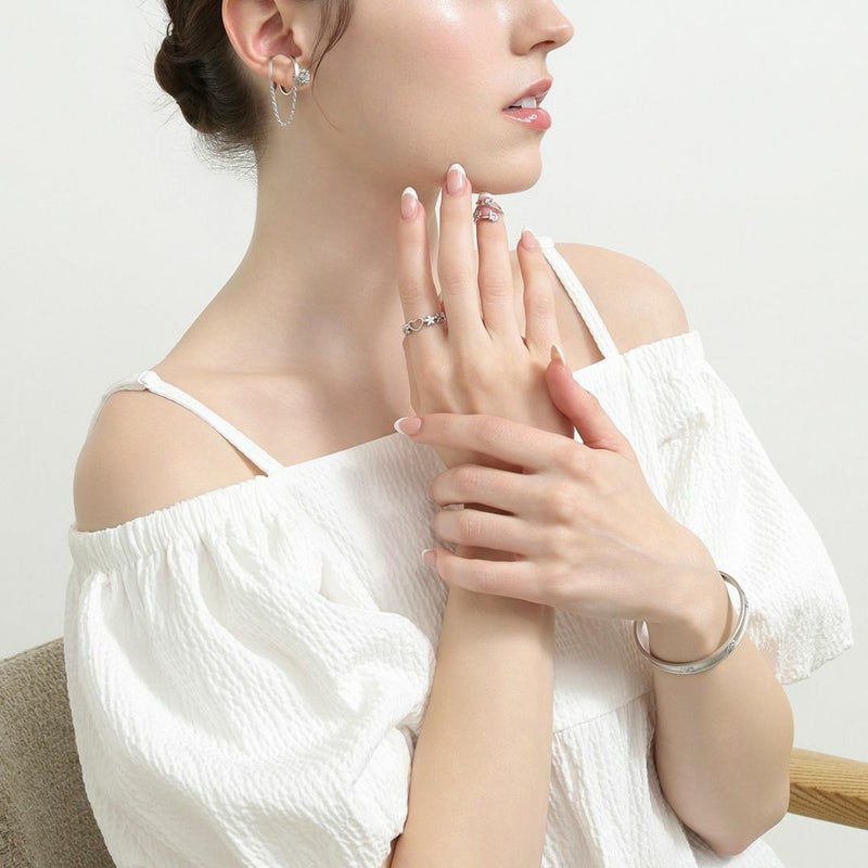 お花の中央にはさりげなくクリアストーンを施し、手元を彩ります。