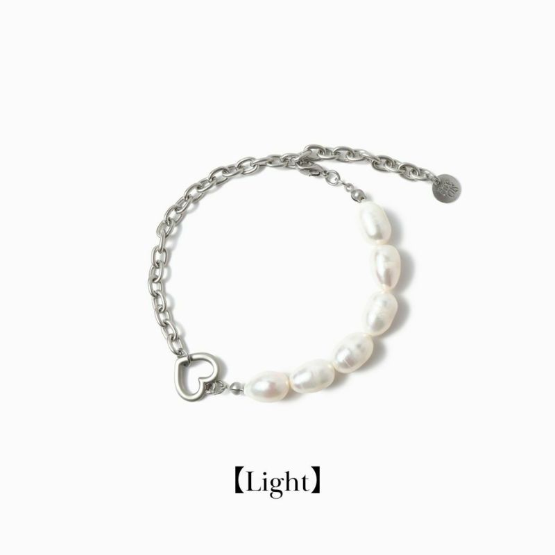 Heart Pearl Chain Bracelet(Silver)【Light】